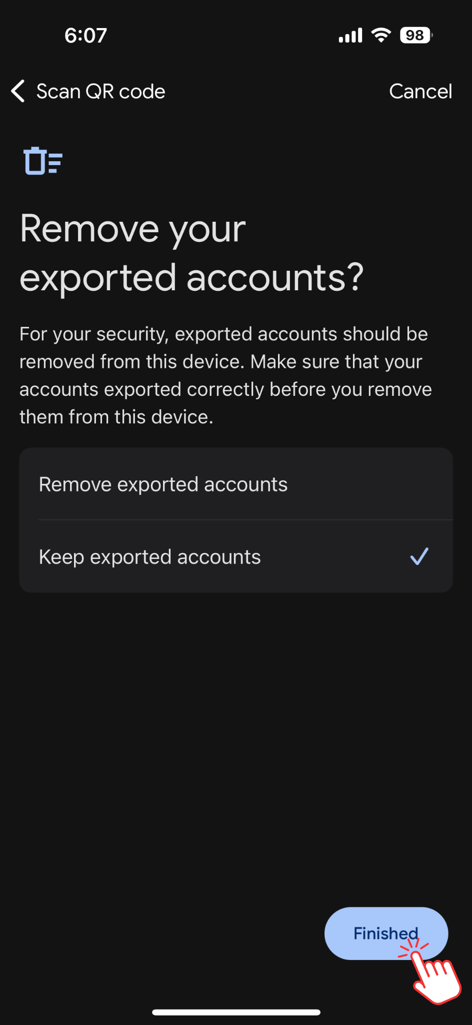 8. Once the scan is successful, your accounts will be imported to the new device.