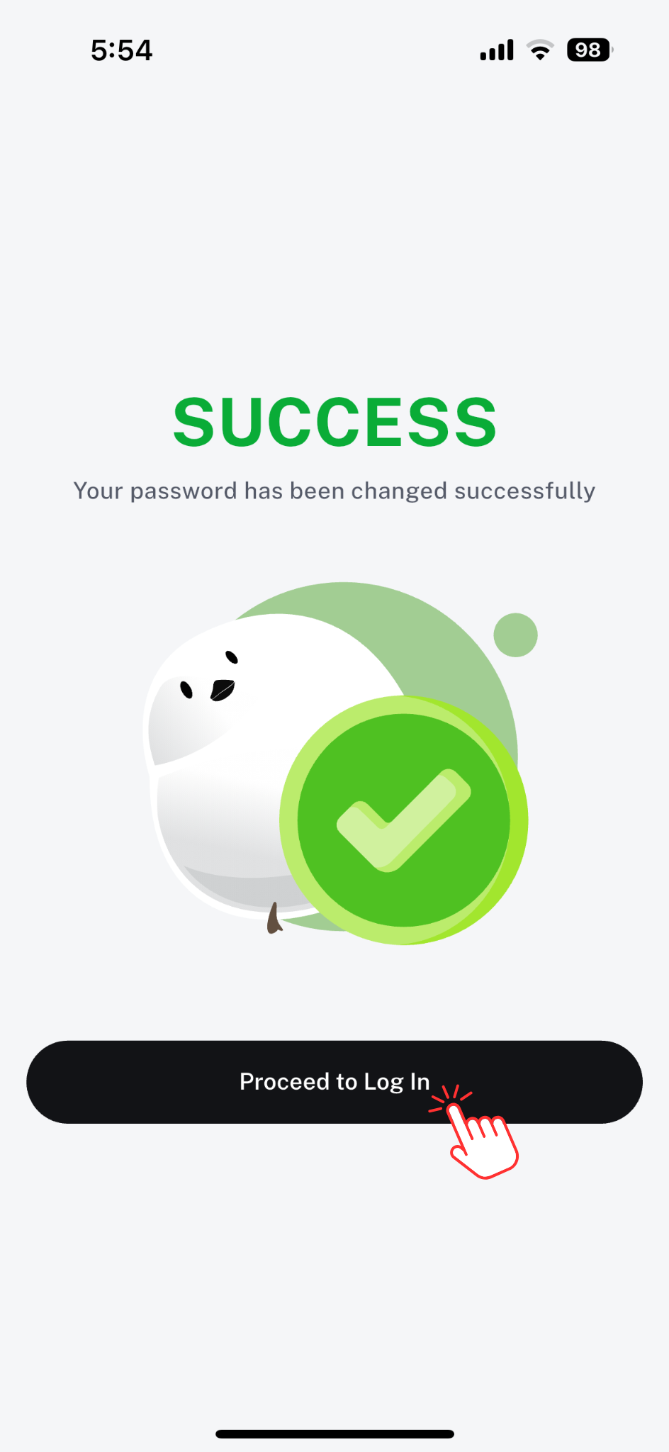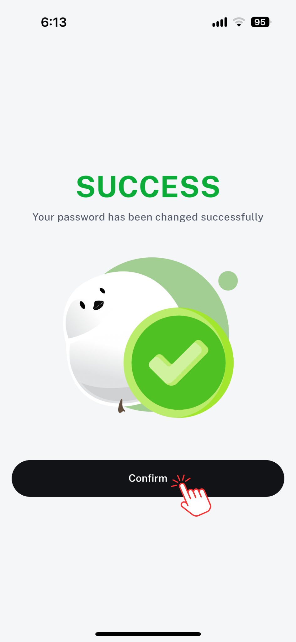 7. After successful change the password, tap Confirm.
