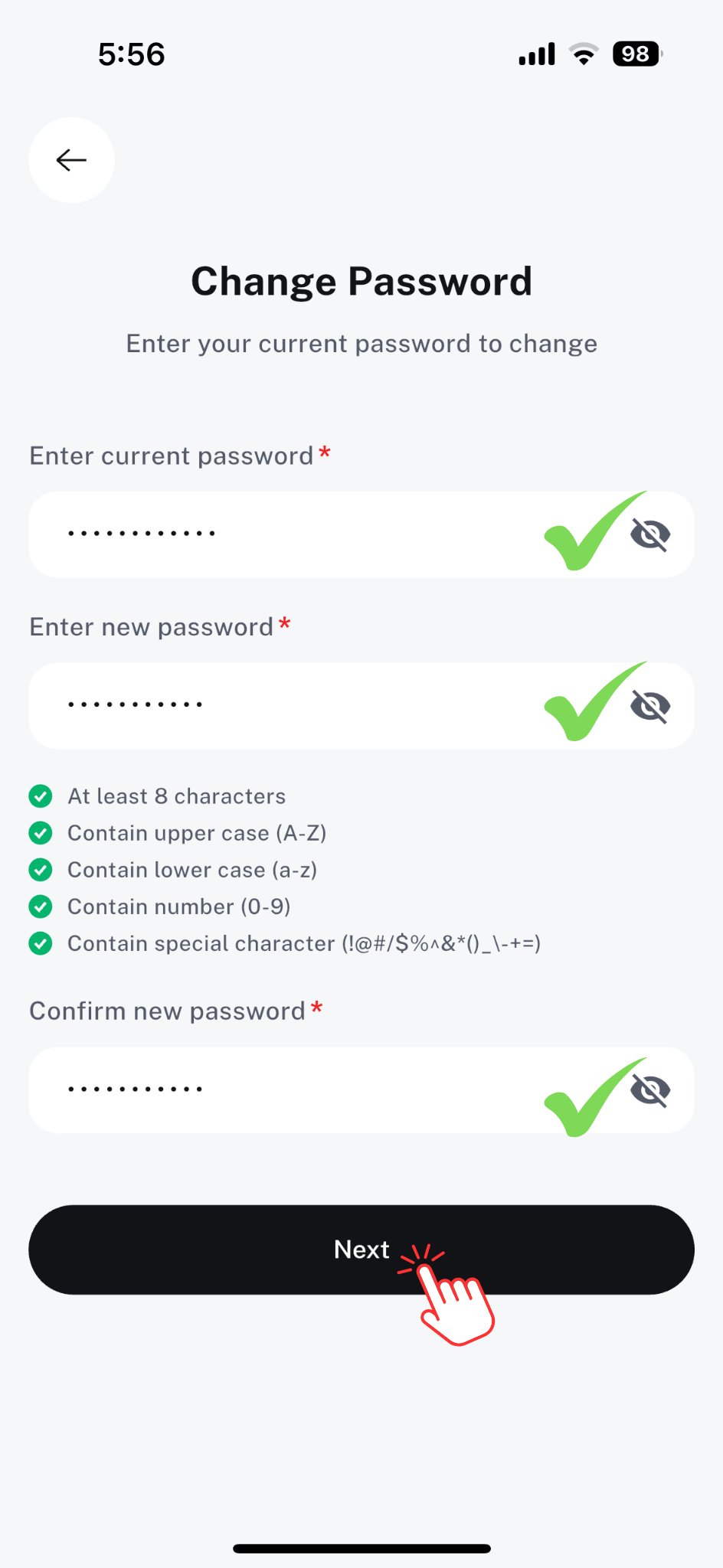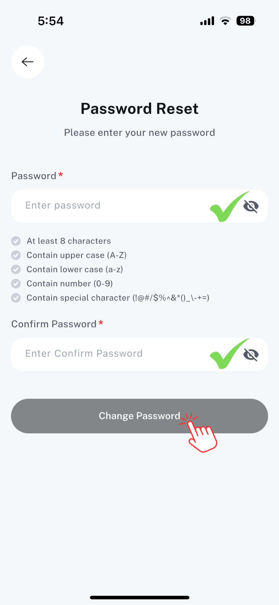 6. Re-enter the same password in the Confirm Password field, then tap change password.