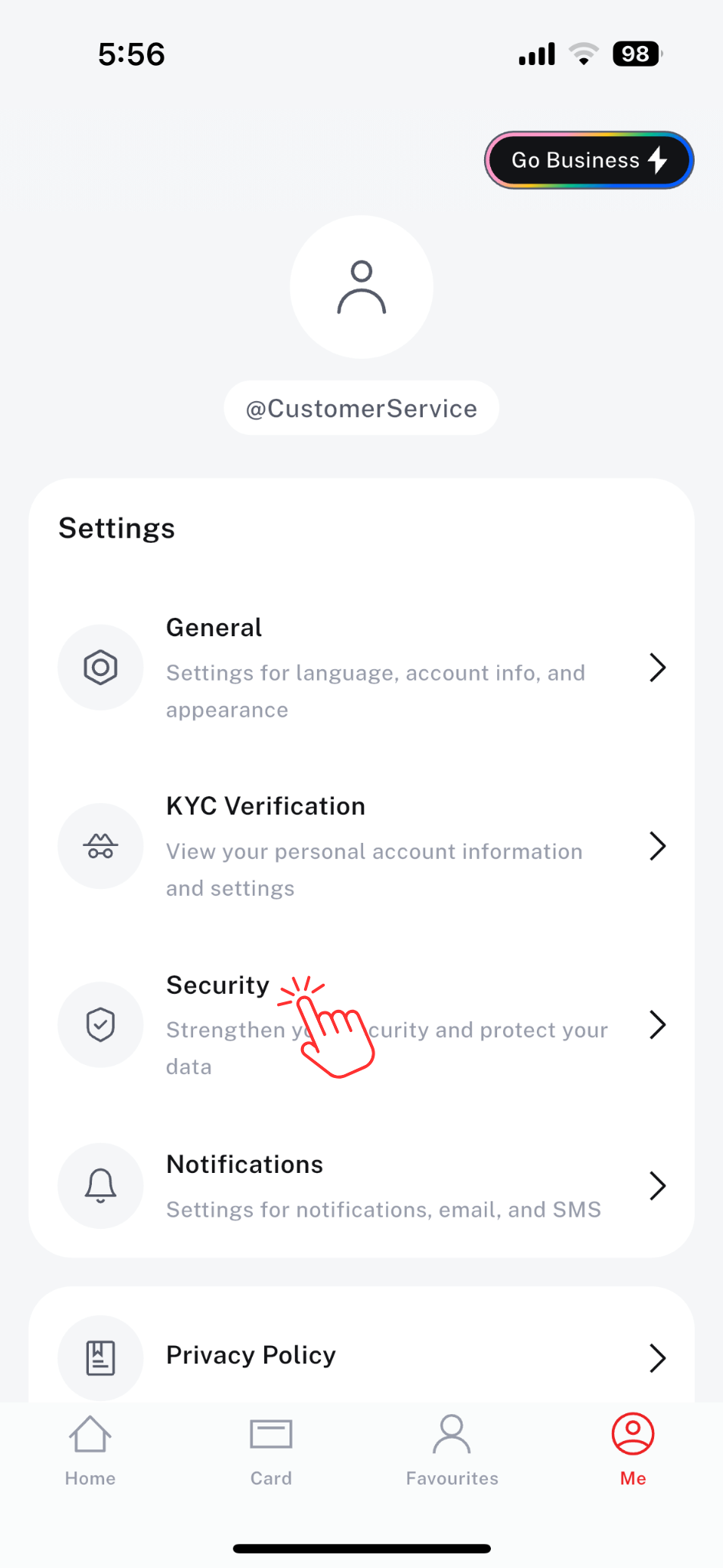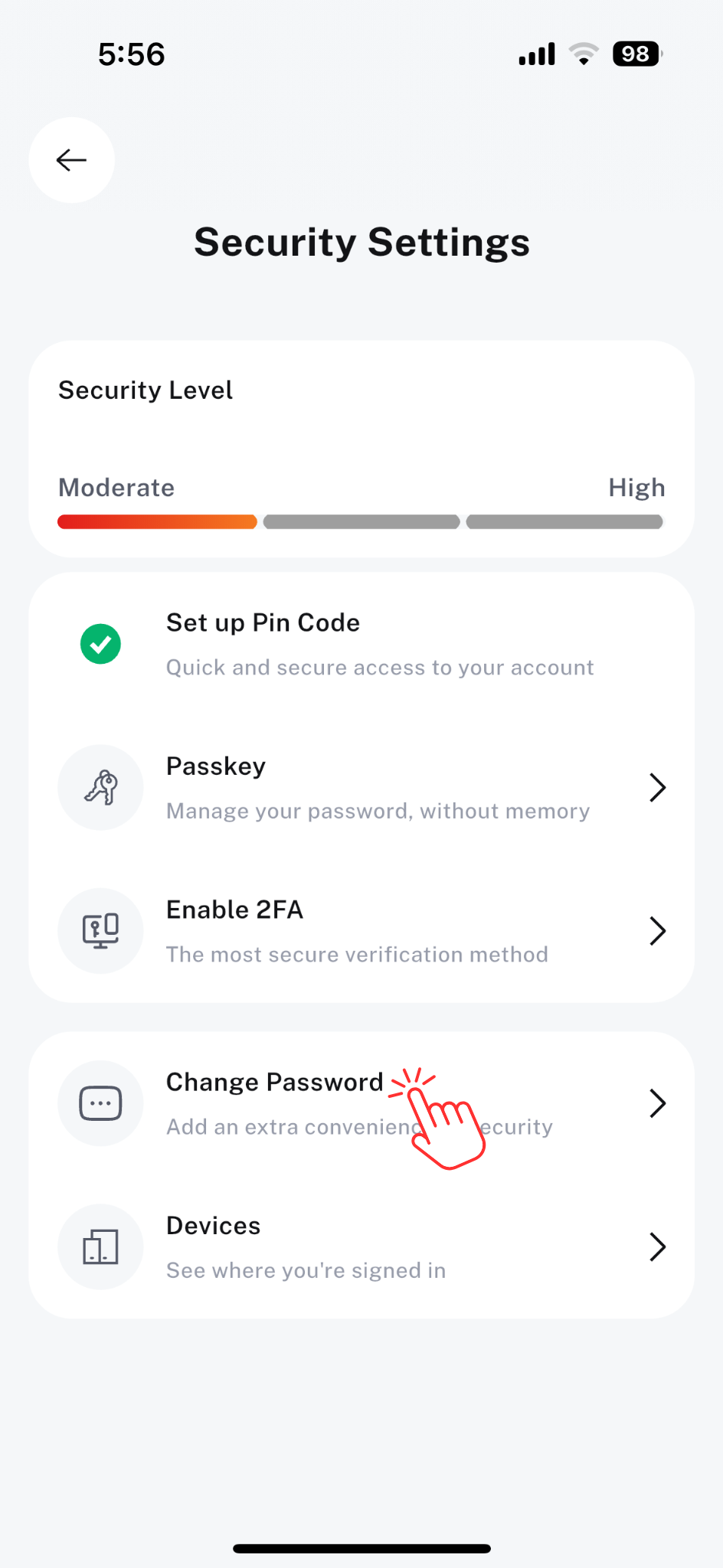 3. Tap Change Password under the Security Settings section.
