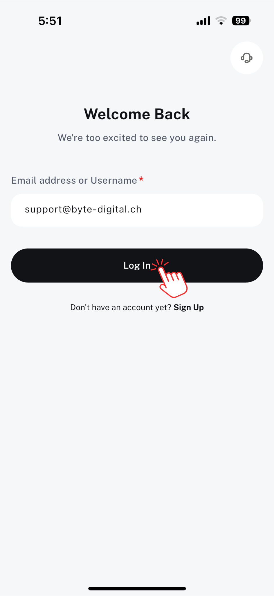 1. Open the SIQO app and go to the Login page.
