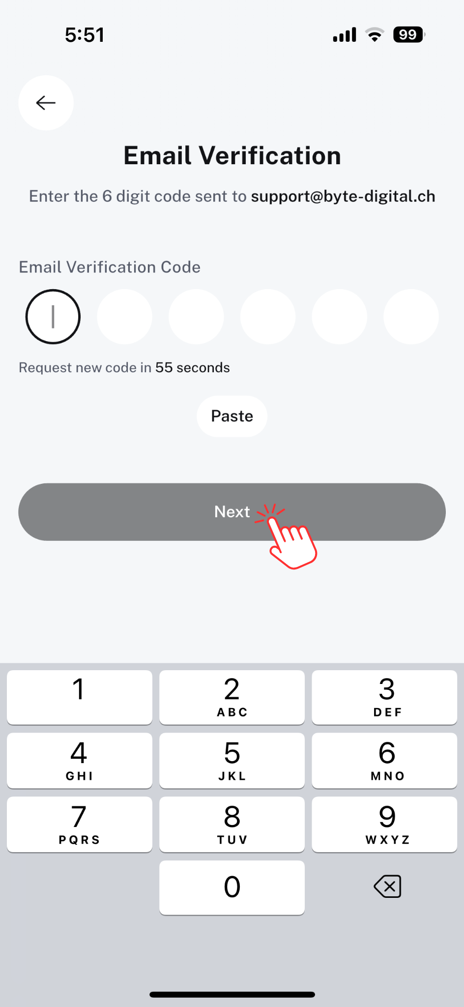 4. Check your email inbox for a 6-digit OTP. Don’t see it? Check your junk or spam folder. Enter the OTP and tap Next.