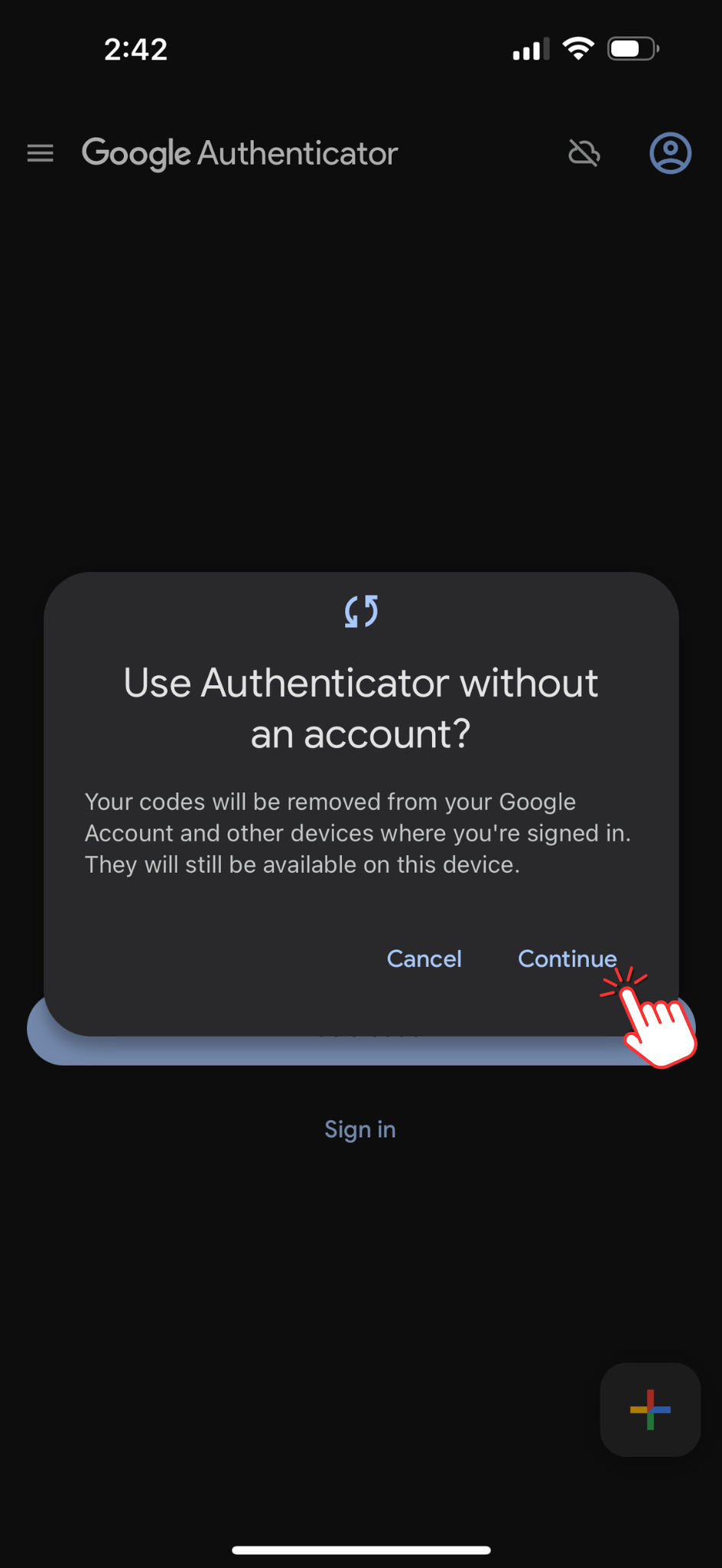 The steps to disable sync depend on whether you're using Google Authenticator with or without linking it to a Google account. Here’s how: